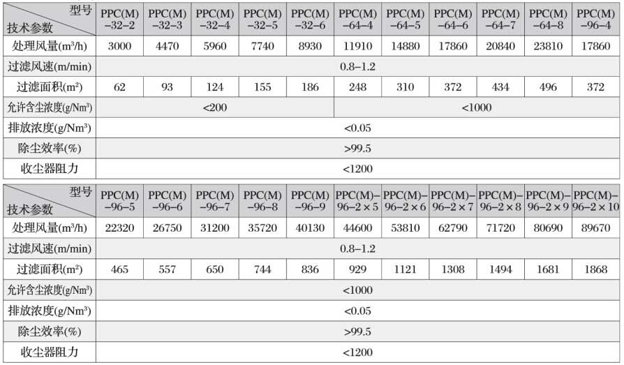 防爆氣箱式脈沖袋除塵器主要技術(shù)參數(shù)